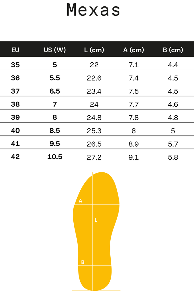 Thanks to its 3 cm platform and the pointed-toe MEXAS last, it holds the foot securely and is very comfortable, with no need for buckles.